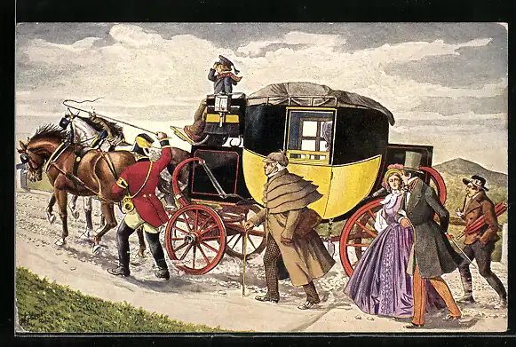 AK Eilpost mit Bergvorgespann, 1848
