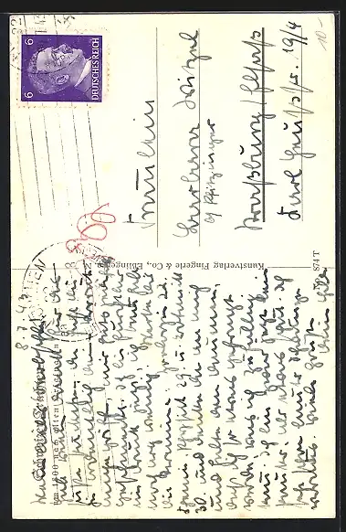 alte Ansichtskarte, gelaufen 1943, Stempelspur, guter Zustand
