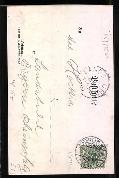 alte Ansichtskarte, gelaufen 1900, Bugspur unten li., Eckknick unten li., guter Zustand