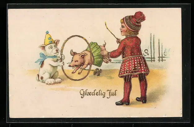 AK Ein Schwein im Rock springt durch einen Ring