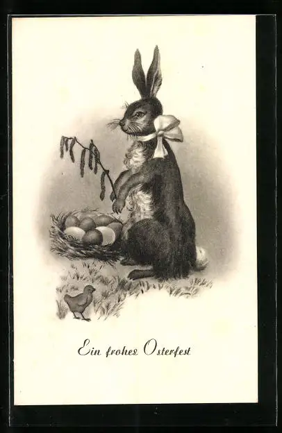 AK Ein frohes Osterfest, Osterhase mit Küken