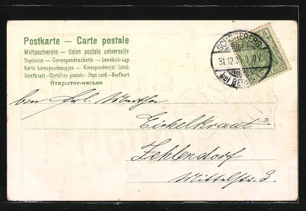 AK Ein glückliches Neujahr, Kleeblatt-Motiv