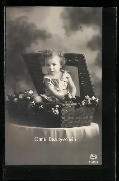 AK Ein kleines Kind in einem Korb, Ohne Bezugsschein