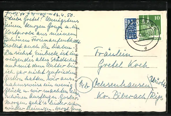 alte Ansichtskarte, gelaufen 1950, guter Zustand
