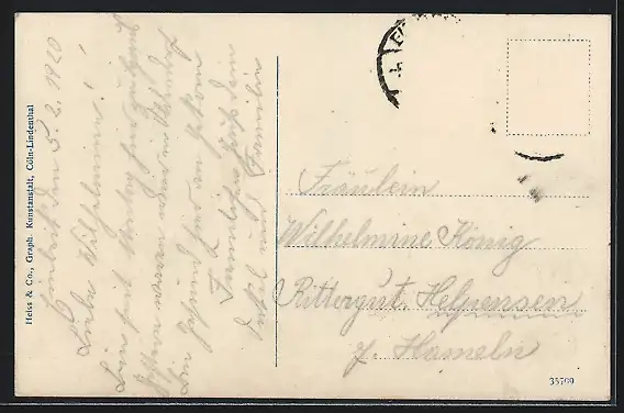 alte Ansichtskarte, gelaufen, Briefmarke entfernt, Stempelspur, guter Zustand