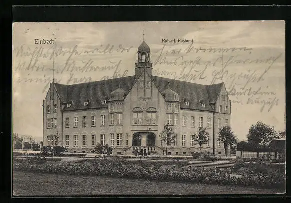 AK Einbeck, Kaiserl. Postamt mit Grünanlagen