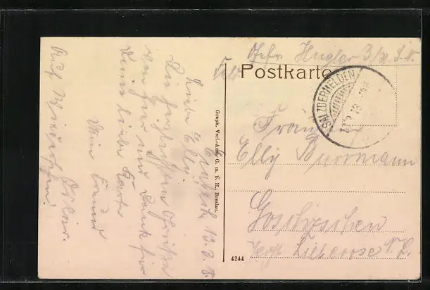 alte Ansichtskarte, gelaufen 1913 als Feldpost, guter Zustand