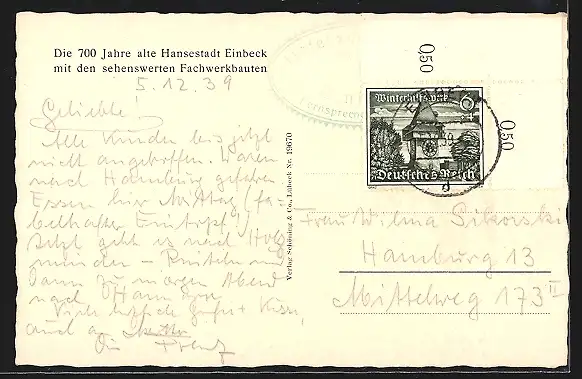 alte Ansichtskarte, gelaufen 1939, Stempelspur, guter Zustand