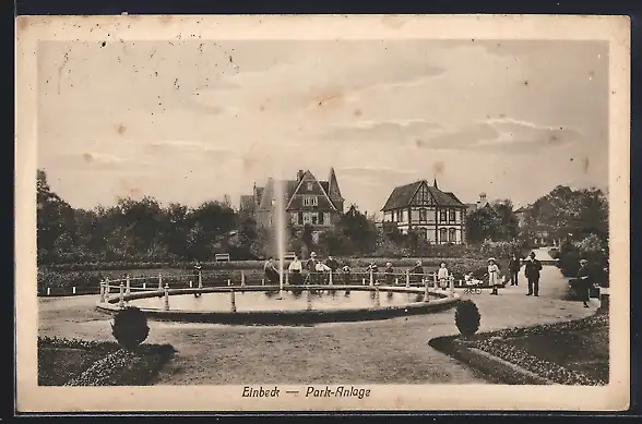 AK Einbeck, Park-Anlage mit Springbrunnen, Villen