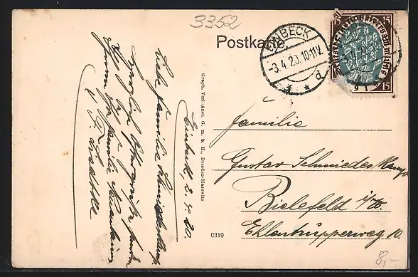 alte Ansichtskarte, gelaufen 1920, Eckknicke re., Stempelspur, guter Zustand