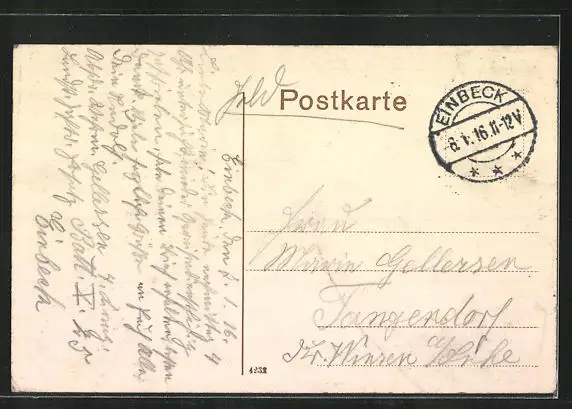 gelaufen als Feldpost 1916, guter Zustand