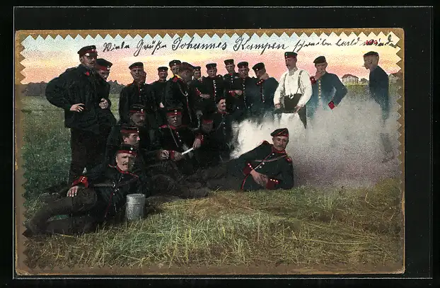 AK Eine Gruppe Soldaten in Uniform auf einem Feld