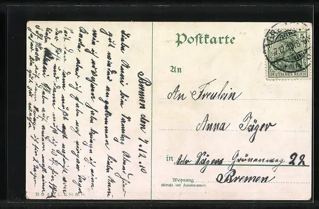 alte Ansichtskarte, gelaufen 1910, guter Zustand
