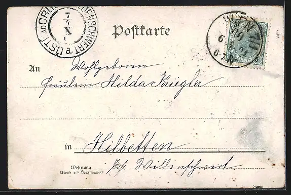 alte Ansichtskarte, gelaufen 1901, Eckknicke unten, Stempelspur, guter Zustand