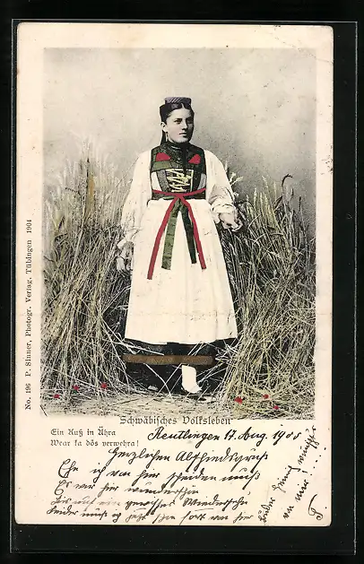 AK Eine junge Frau im Felde in schwäbischer Tracht
