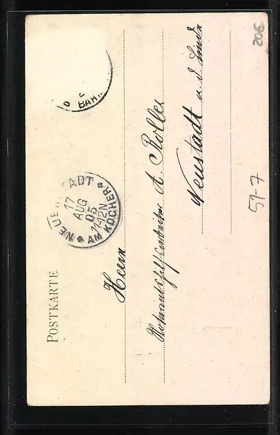 alte Ansichtskarte, gelaufen 1905, Briefmarke entfernt, rückseitig Oberflächenschaden, guter Zustand