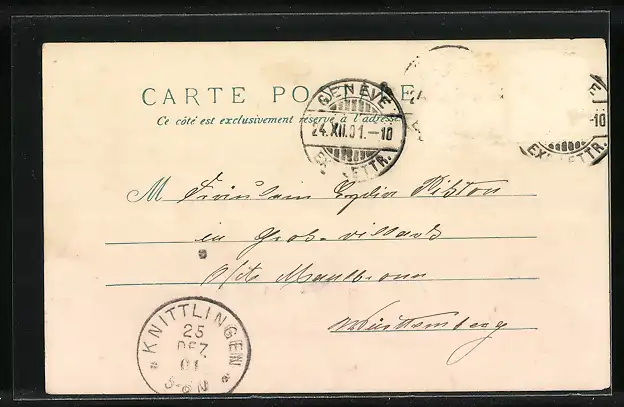 gelaufen 1901, Briefmarke entfernt, rückseitig Oberflächenschaden, guter Zustand