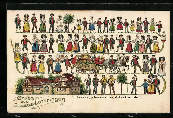 AK Eingeladene Gäste in elsass-lothringischen Trachten