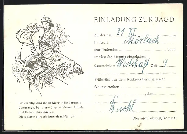 AK Einladung zur Jagd, Jäger und Jagdhund