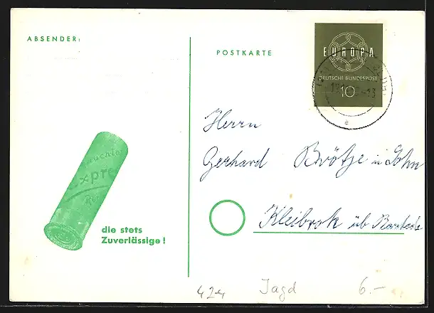 gelaufen 1953, Eckknick li. oben, guter Zustand
