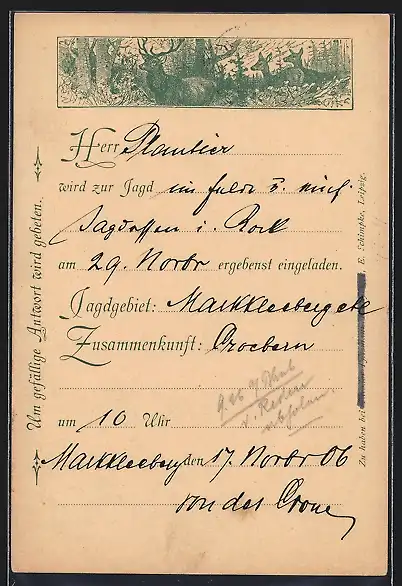 AK Einladung zur Jagd, Motiv mit Rotwild
