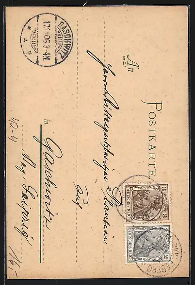 alte Ansichtskarte, gelaufen 1906, Eckknicke unten, guter Zustand