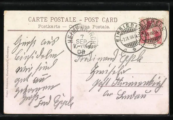 alte Ansichtskarte, gelaufen 1908, guter Zustand