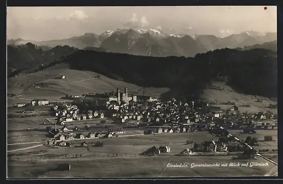 AK Einsiedeln, Gesamtansicht mit Glärnisch aus der Vogelschau