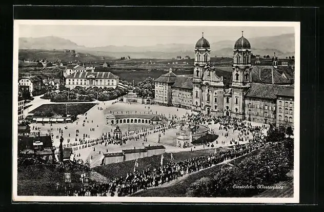 AK Einsiedeln, Klosterplatz aus der Vogelschau