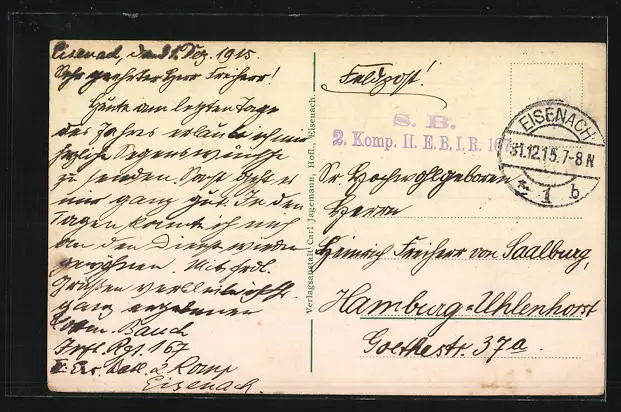 alte Ansichtskarte, gelaufen 1915, Stempelspur, guter Zustand