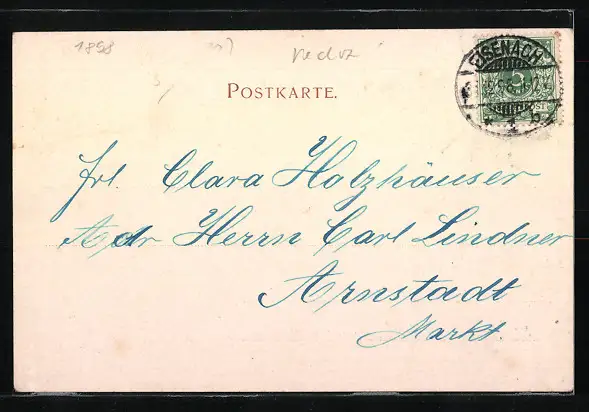 alte Ansichtskarte, gelaufen 1898, guter Zustand