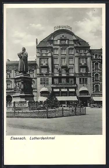 AK Eisenach, Lutherdenkmal vor Hotel Thüringer Hof