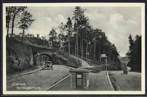 AK Eisenach / Thüringen, Wartburgschleife, Auto auf Bergstrasse
