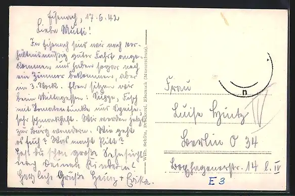 gelaufen 1942, Briefmarke entfernt, guter Zustand