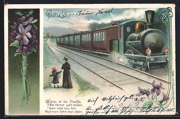 AK Eisenbahn fährt an Mutter mit Kind vorbei