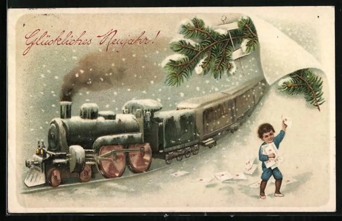 AK Eisenbahn fährt durch den Schnee