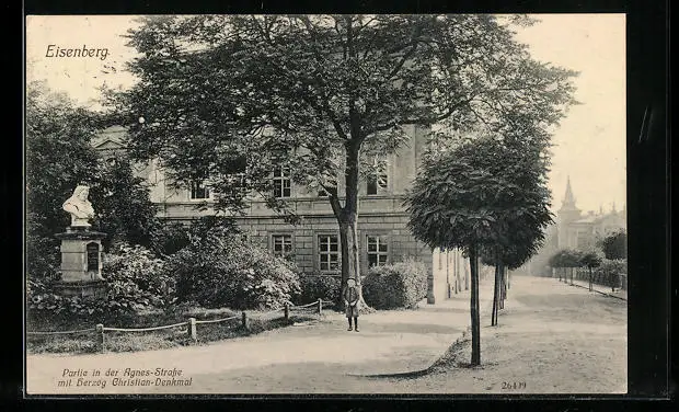 AK Eisenberg, Agnes-Strasse mit Herzog Christian-Denkmal
