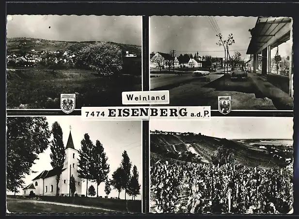 AK Eisenberg a. d. P., Gesamtansicht, Stadtplatz, Kirche, auf dem Weinberg