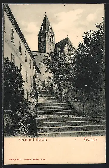 AK Eisenerz, Blick hinauf zu Kirche u. Museum