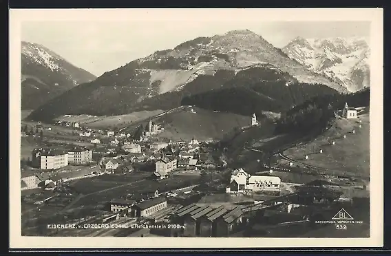 AK Eisenerz, Gesamtansicht mit Blick auf Erzberg und Reichenstein