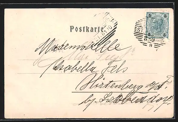 alte Ansichtskarte, gelaufen 1900, Eckknick re. unten, Stempelspur, Bugspur re. unten, guter Zustand