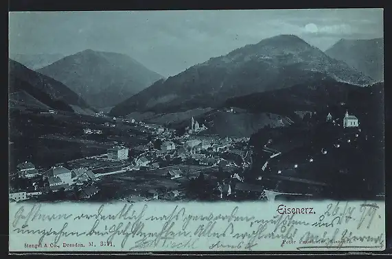 AK Eisenerz, Totalansicht mit Gebirgspanorama