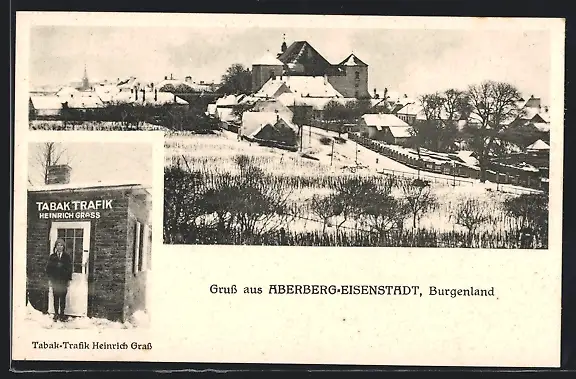 AK Eisenstadt-Aberberg, Tabak-Trafik Heinrich Grass, Ortsansicht