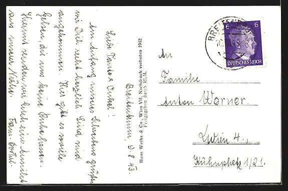 alte Ansichtskarte, gelaufen 1943, guter Zustand