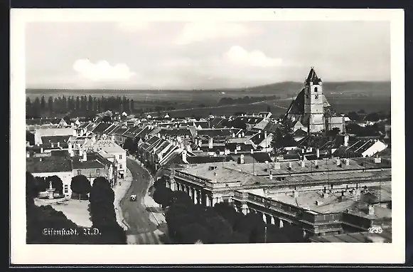 AK Eisenstadt, Strassenpartie mit Auto, Stadtansicht