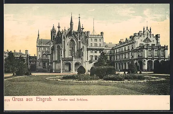 AK Eisgrub, Kirche und Schloss mit Anlagen