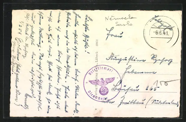 alte Ansichtskarte, gelaufen 1941 als Feldpost, Eckknicke li., guter Zustand