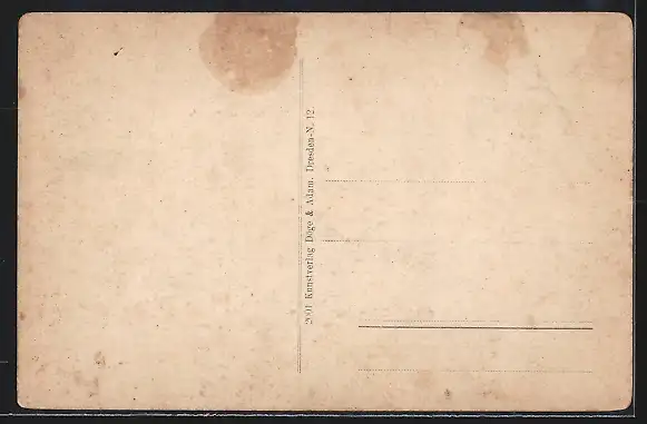 alte Ansichtskarte, ungelaufen, Eckknick re. oben, Bugspur re. oben, Papierreste auf Vorderseite li. oben