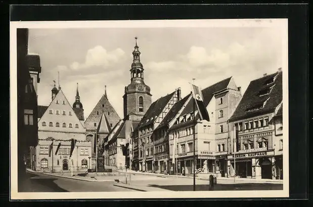 AK Eisleben, Markt mit Rathaus und Kirche St. Andreas