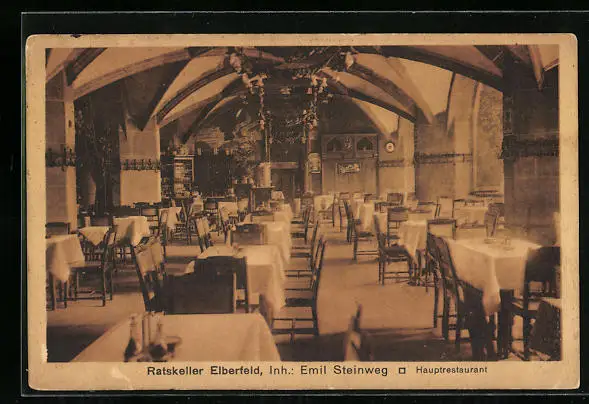 AK Elberfeld, Gasthaus Rathskeller, Blick in das Hauptrestaurant